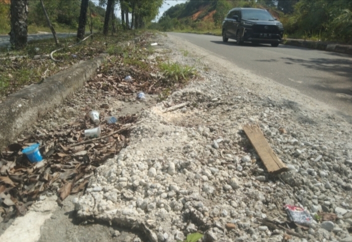 “Tumpukan cor beton tersebut sudah tinggi dan semakin melebar dari tahun ketahun. Seolah – olah ada pembiaran dengan kondisi jalan umum tersebut,” terang Rendi.