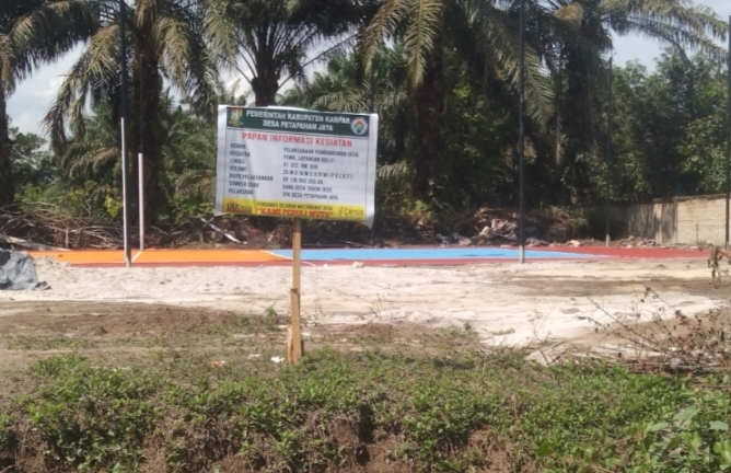 KAMPAR, Juangsumatera.com – Pembangunan lapangan voli yang didanai oleh anggaran Desa Petapahan Jaya Kecamatan Tapung Kabupaten Kampar diduga dibangun di wilayah Desa Petapahan Kecamatan Tapung.