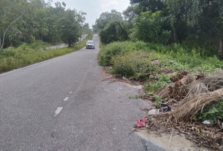 Menurut pantauan Juangsumatera.com, Kamis siang (16/4/2026) bahwa tumpukan sampah ditengah jalan dan semak sudah menutup hampir digaris putih tengah jalan berada hanya berjarak lebih kurang 500 meter dari i kantor Bupati Kampar menuju arah Salo.