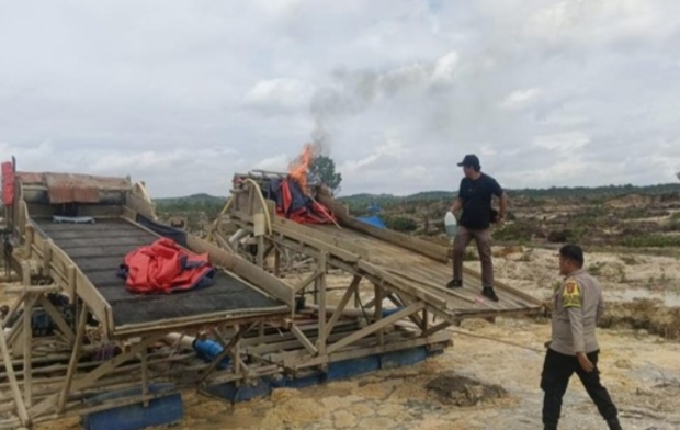 Hasil penyelidikan tersebut, tim gabungan menemukan 15 rakit atau dompeng yang kemudian dimusnahkan dengan cara dibakar, langsung di lokasi. Sayangnya, pada saat tim tiba di lokasi, pelaku diduga telah melarikan diri.